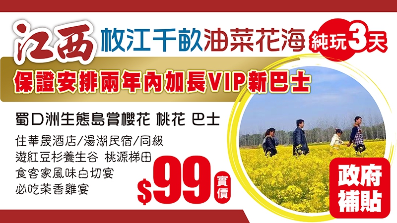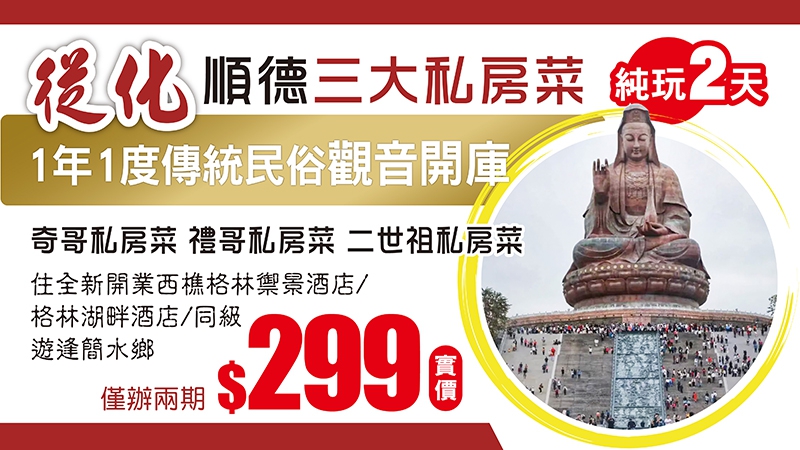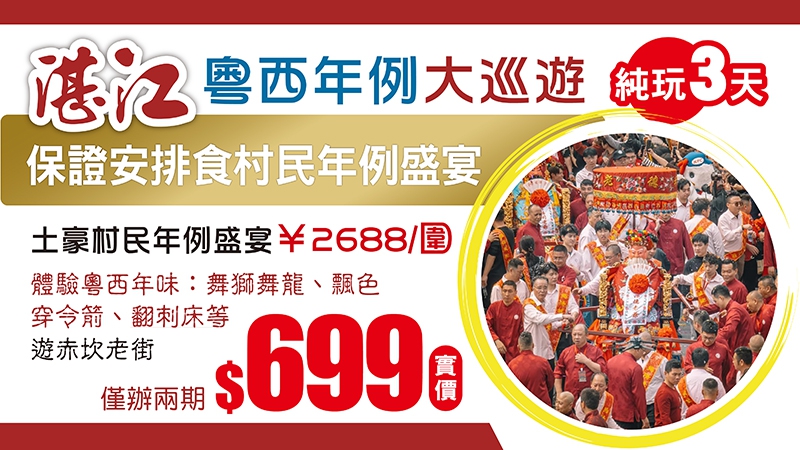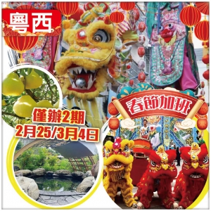 春節加班【純玩兩廣】純正粵西年例民俗、歎陸川九龍養生溫泉、品湛江美食、廣西北海銀灘 巴士4天