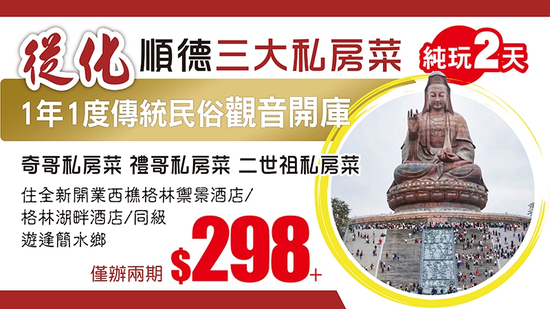 順德 一年一度傳統民俗【順德觀音開庫】 食順德三大私房菜 純玩2天