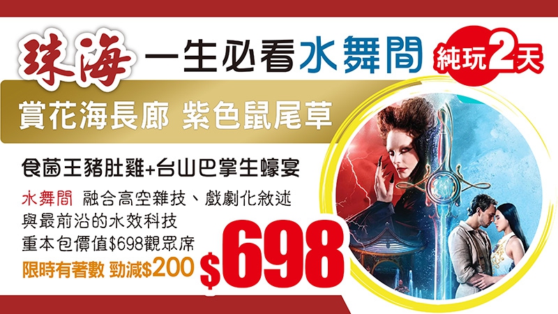 中午出發 清遠 勁抵玩-連睇兩場大型Show【夢回嶺南】【融創國際大馬戲】 美食純玩2天
