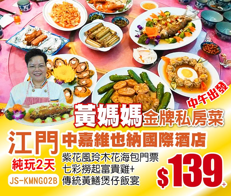 尋味知名美食-順德民間廚王黃媽媽金牌金牌私房菜 江門純玩2天 只需$139