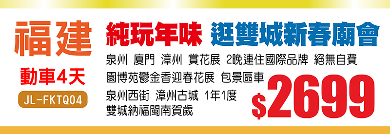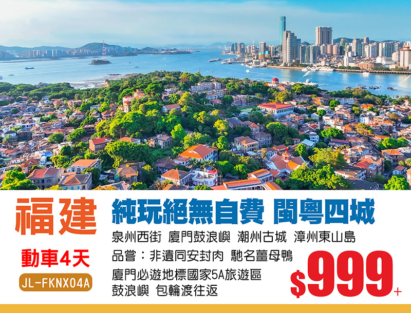 福建純玩 無購物 無自費 高鐵4天 暢遊閩粵四城,$999+