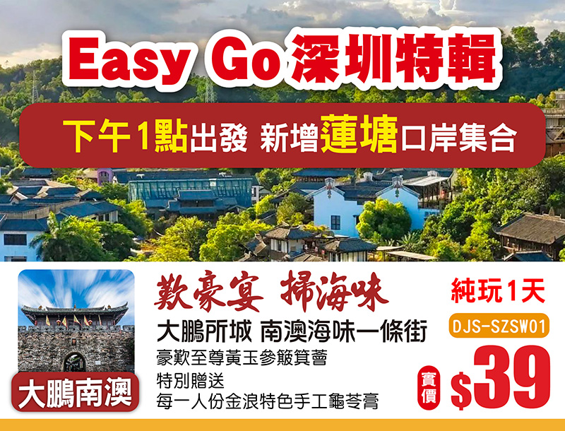 Easy Go 深圳特輯 下午1點出發 新增蓮塘口岸集合,1-3天 只需$39+