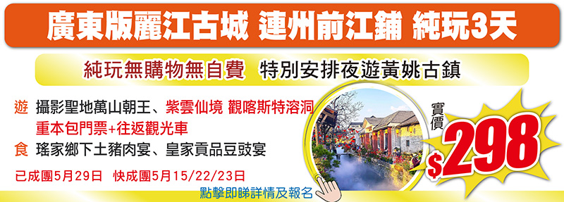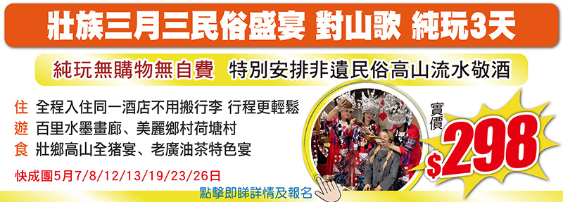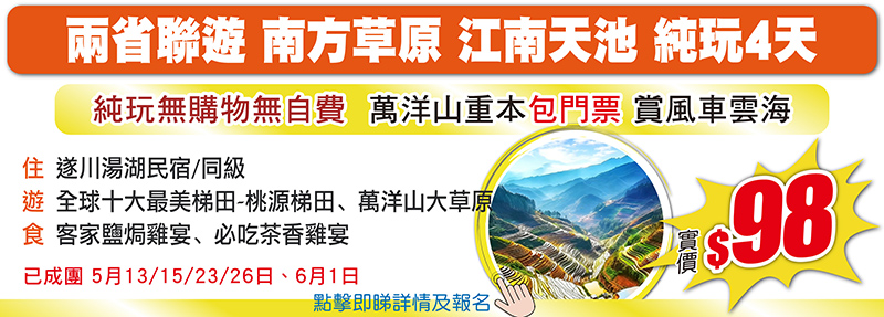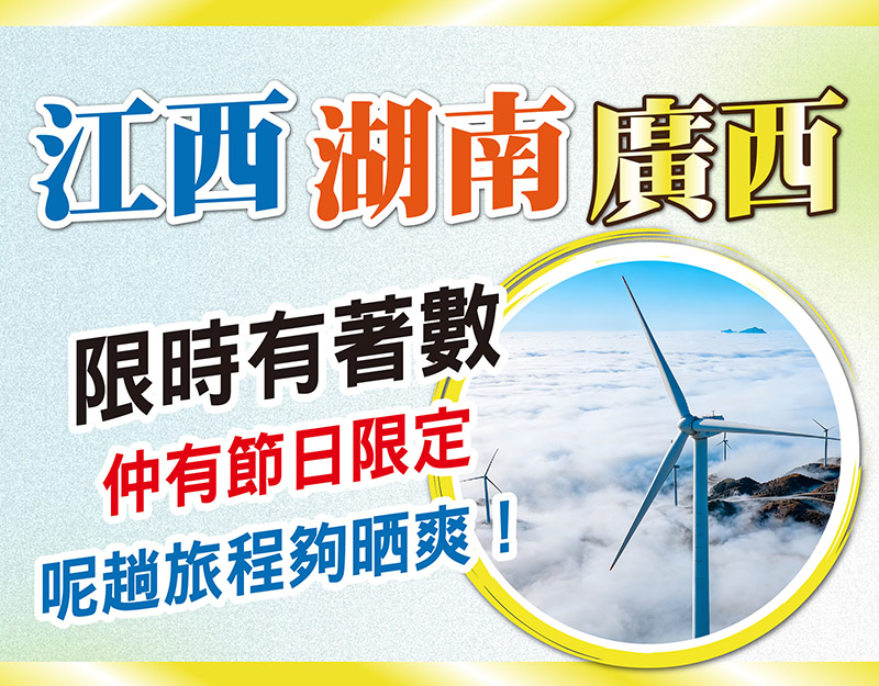 江西、湖南、廣西 跨省純玩3至4天,限時有著數,仲有佛誕加班,只需$48+