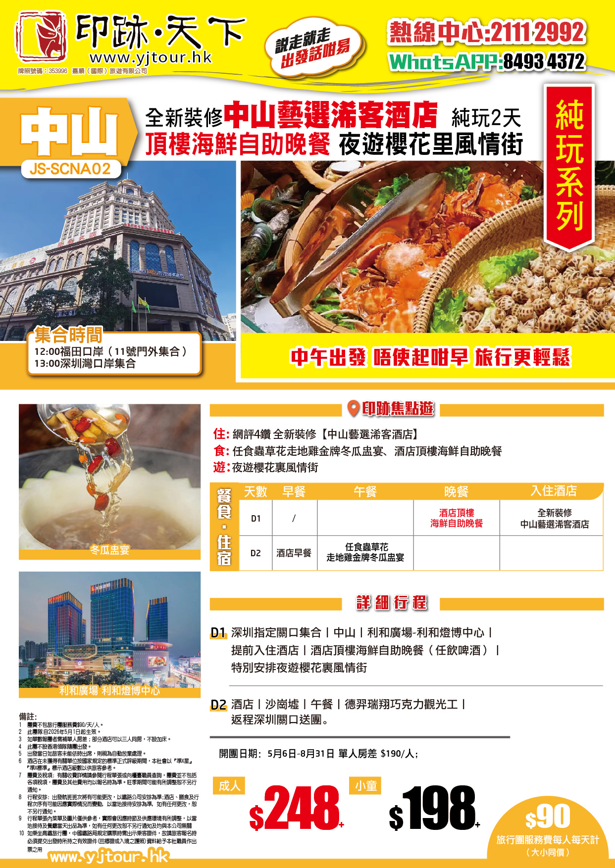 | 07月26日 | 星期日 | $248 | $198 |