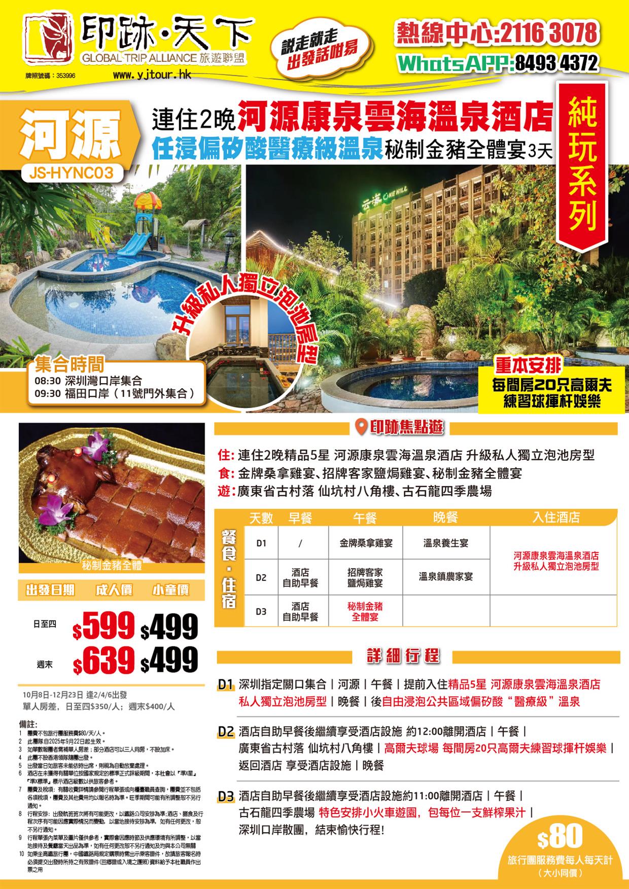 | 12月20日 | 星期六 | $639 | $499 |