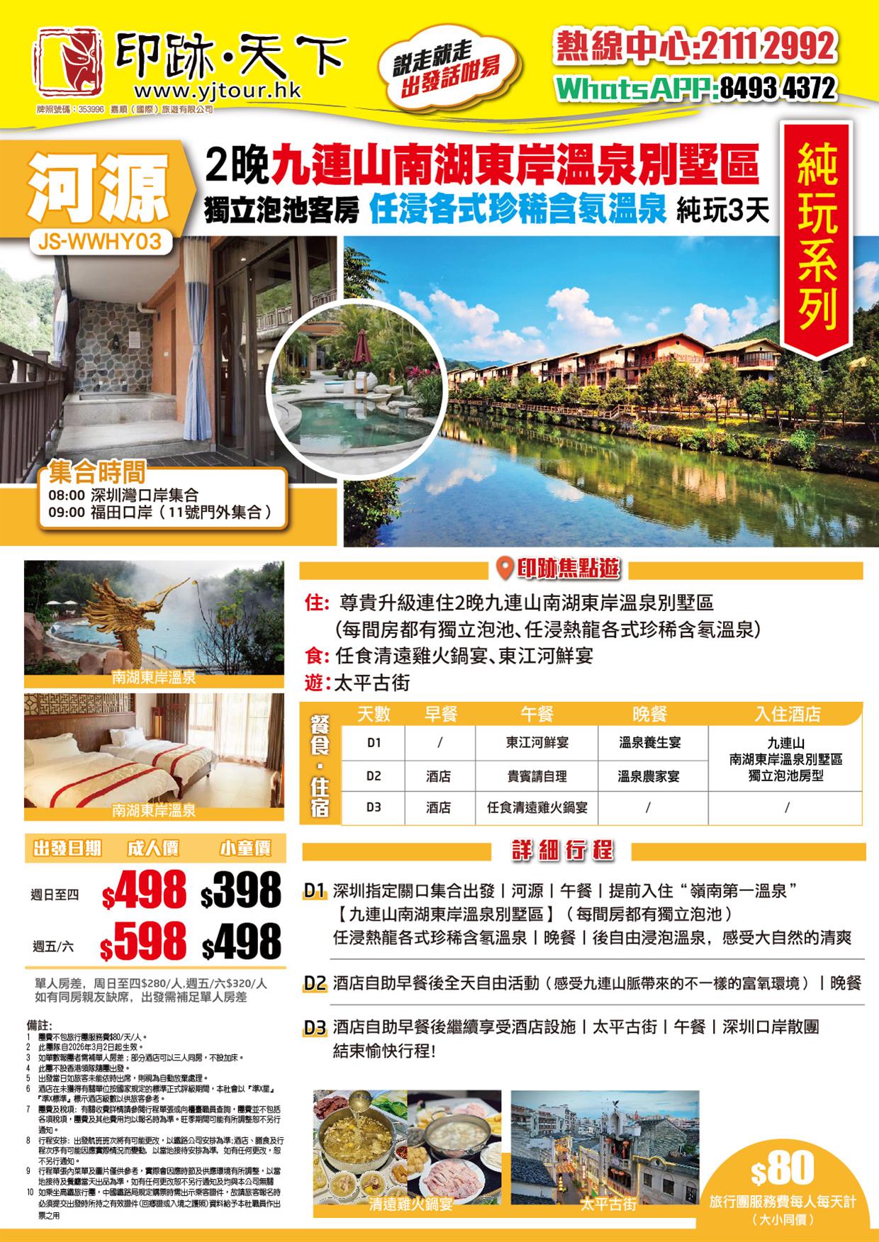 | 03月26日 | 星期四 | $498 | $398 |
