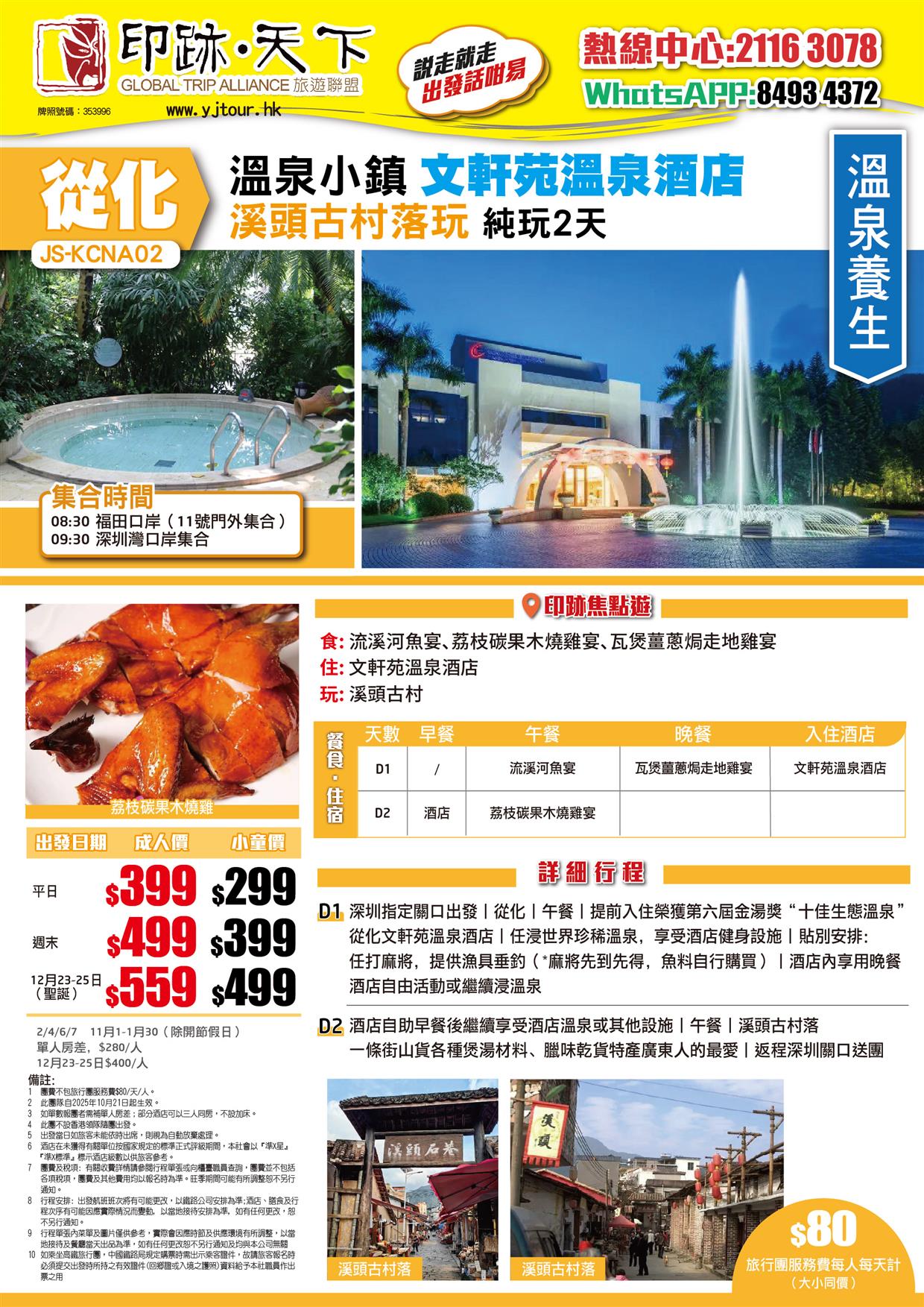 | 12月20日 | 星期六 | $499 | $399 |