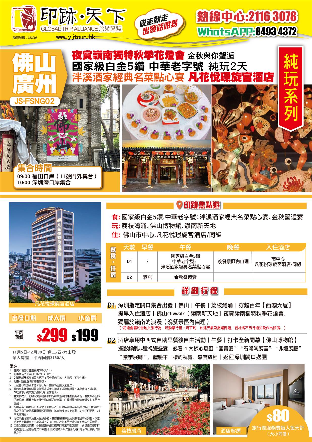 佛山 夜賞嶺南獨特秋季花燈會 中華老字號:泮溪酒家經典名菜點心宴 凡花悅璟旋宮酒店純玩2天