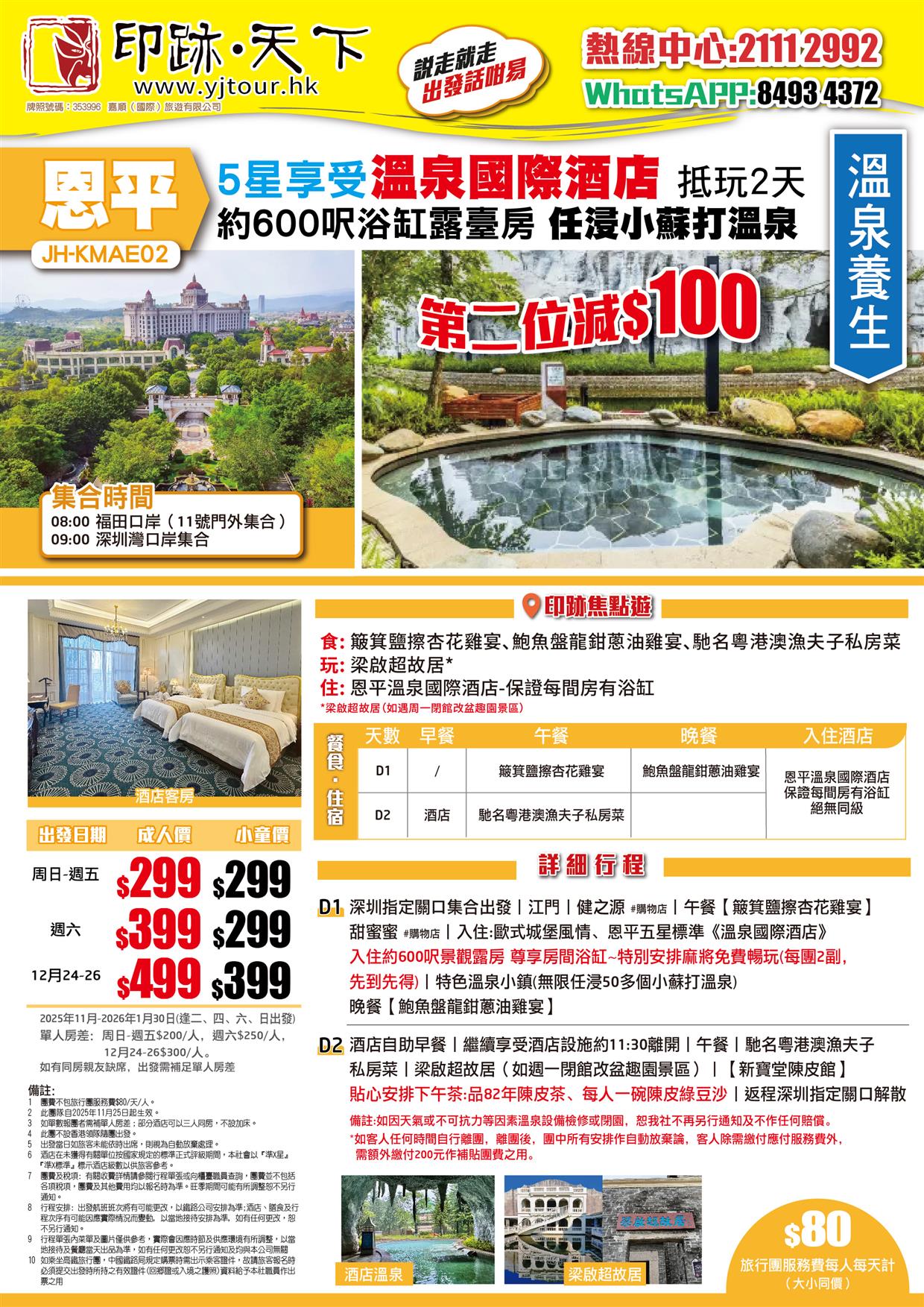| 01月24日 | 星期六 | $399 | $399 |