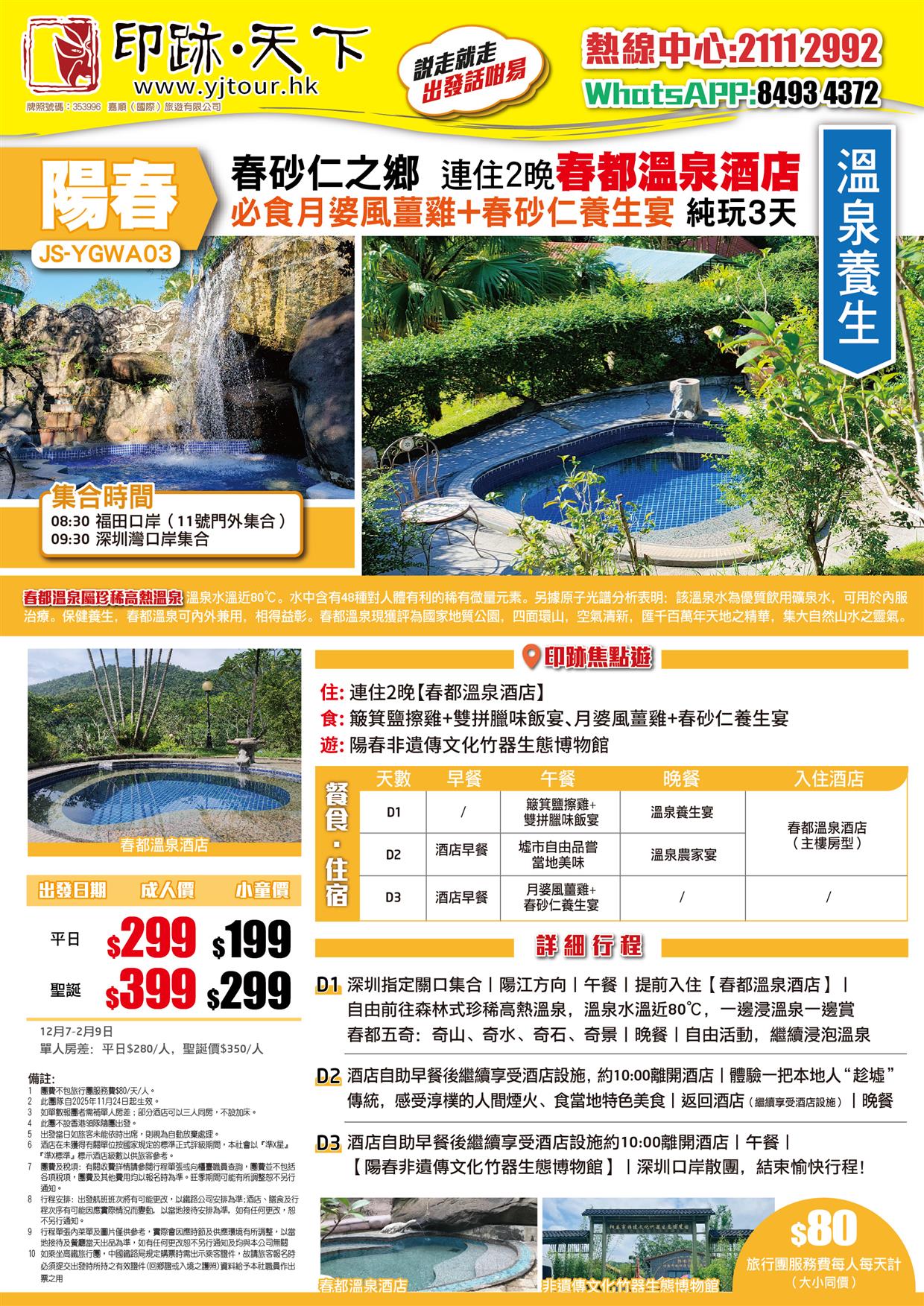 | 12月27日 | 星期六 | $399 | $299 |