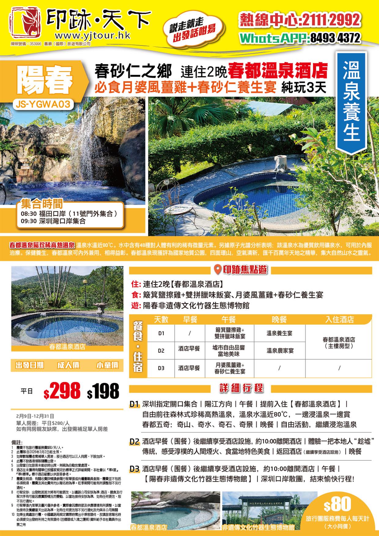 | 03月27日 | 星期五 | $298 | $198 |
