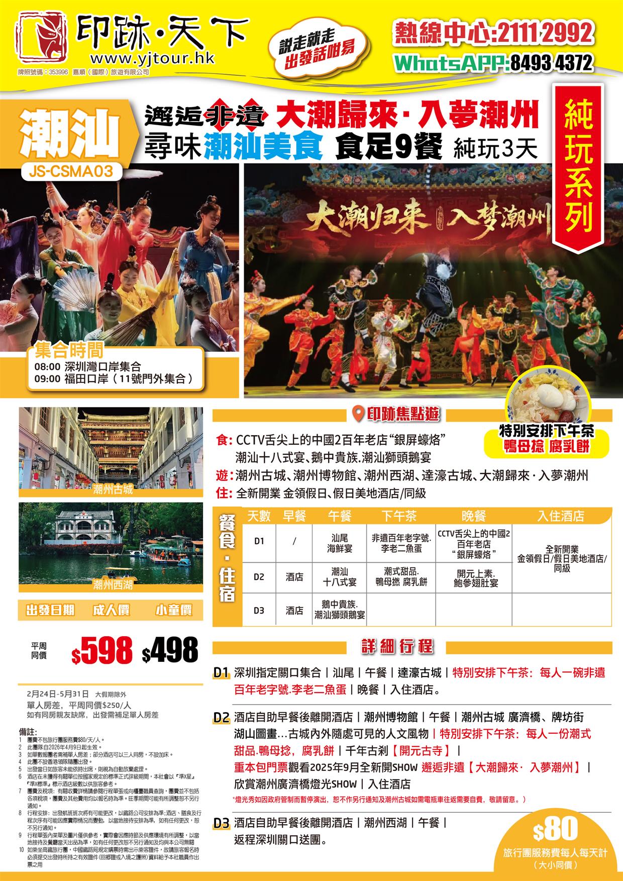 | 05月27日 | 星期三 | $598 | $498 |