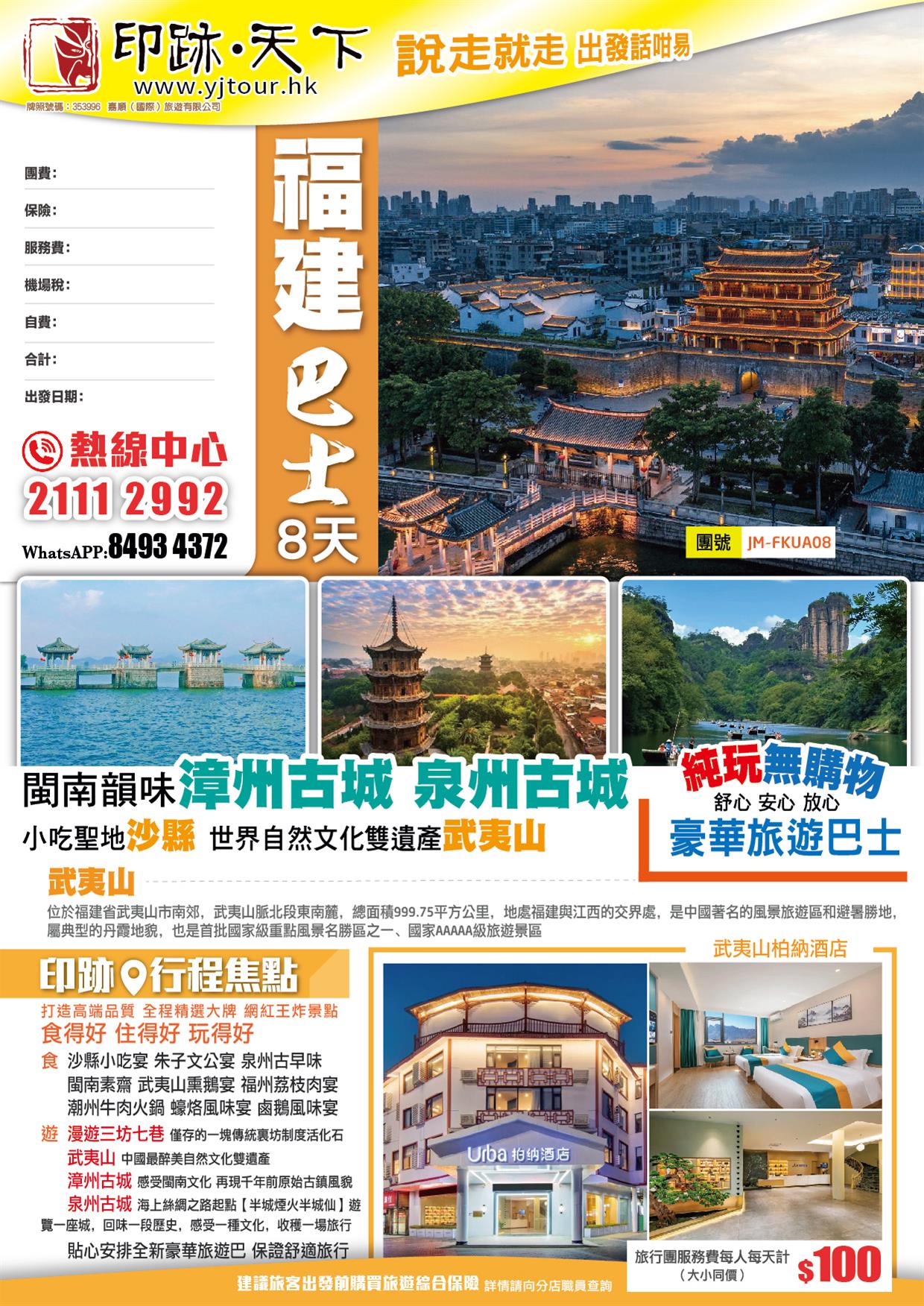 (分享會優惠團)【纯玩】閩南、武夷山、淘金山、沙縣、福州、泉州、8天豪華巴士團