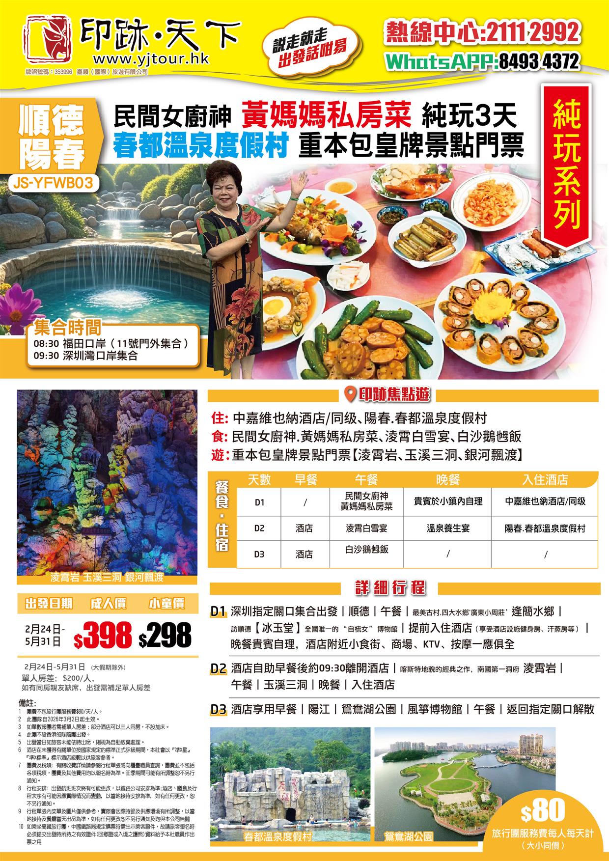 | 10月03日 | 星期六 | $398 | $298 |
