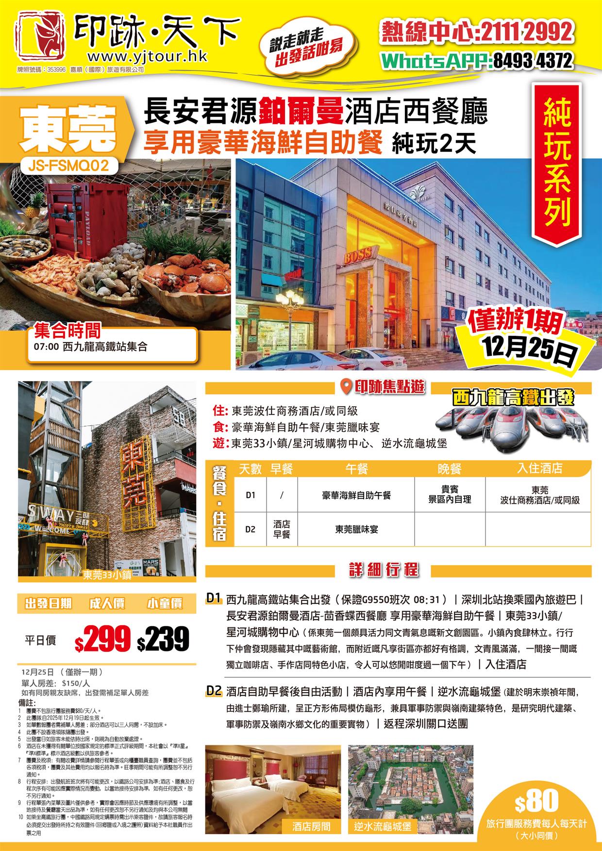 東莞 西九龍高鐵站出發 長安君源鉑爾曼酒店享用豪華海鮮自助餐 東莞33小鎮 純玩2天
