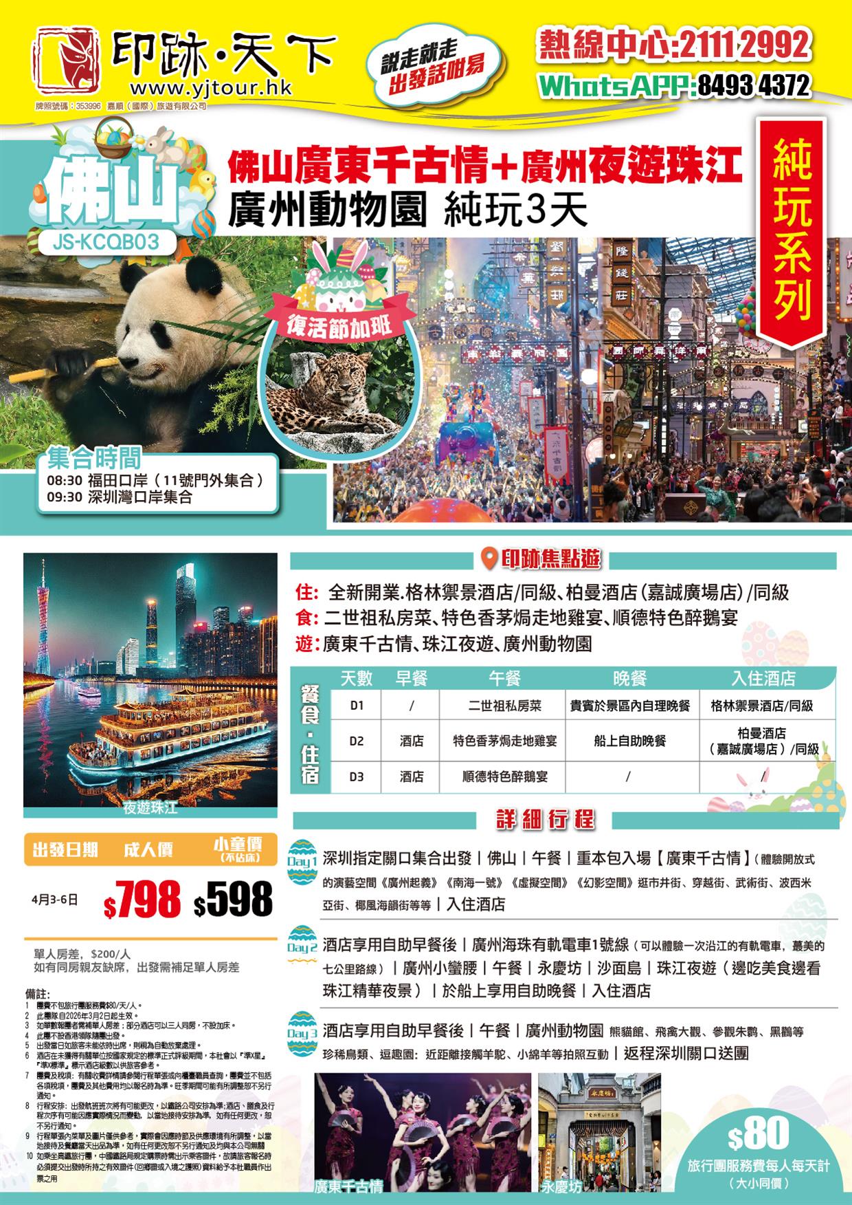 復活節加班:廣東千古情+夜遊珠江+廣州動物園純玩3天