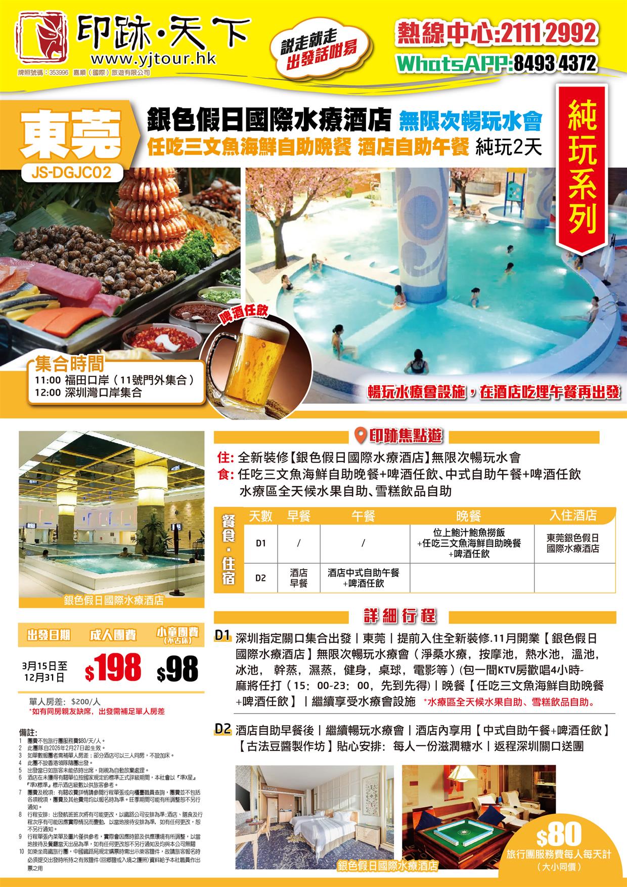 | 03月26日 | 星期四 | $198 | $98 |