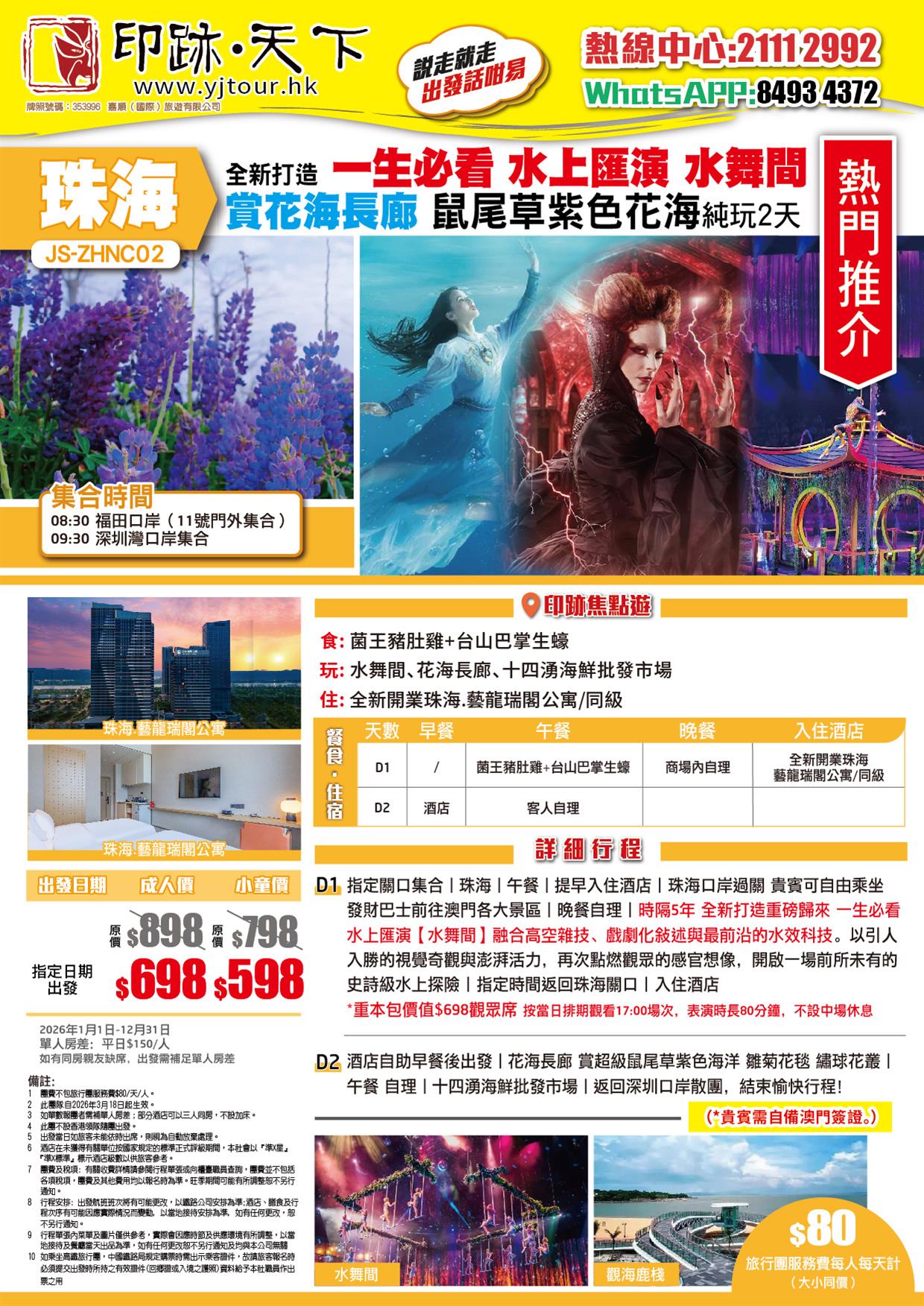 | 04月08日 | 星期三 | $698 | $598 |